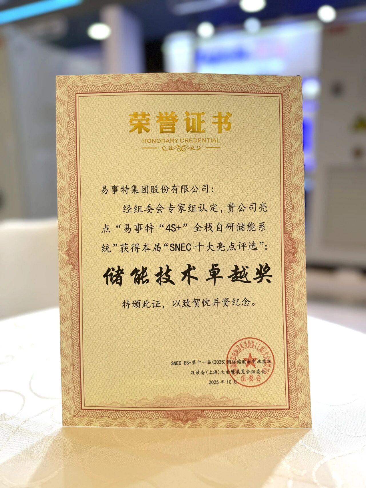 喜訊!易事特榮膺SNEC ES+十大亮點 “儲能技術(shù)卓越獎”